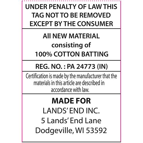 • 100% cotton shell; 95% cotton/5% polyester fill. Machine wash. Imported